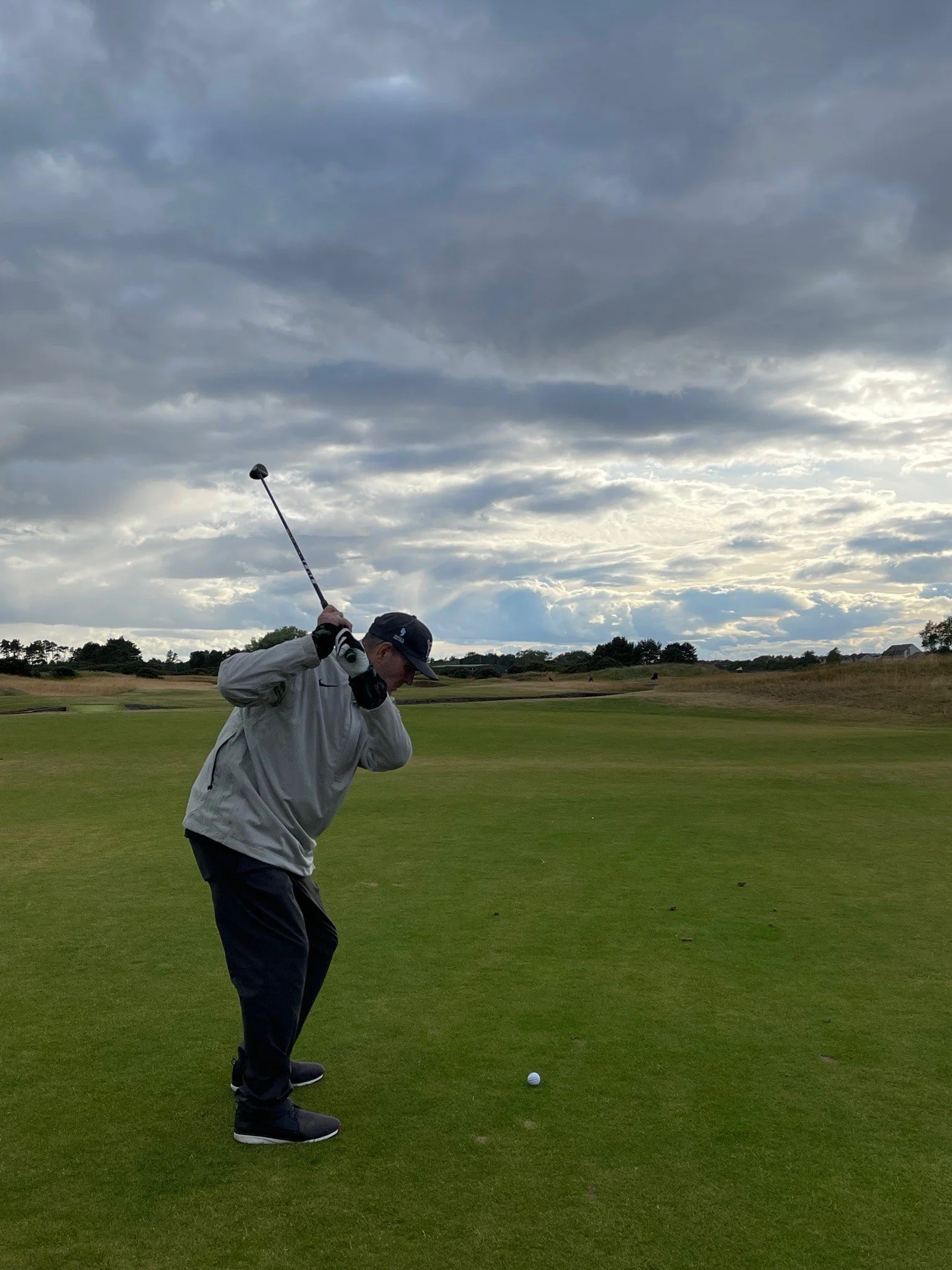 During his year long fight against gastro-esophageal cancer, Jim managed to realize his dream of attending the 150th Open at St. Andrews. Sporting a feeding tube, he found the strength to play his final round on the Championship Course at Carnoustie Golf Links. Bucket List checked, thanks to "Jerry's Make-A-Wish Tour" of Scotland.